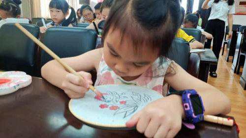 今日上午,浙江余姚市新城市社区关心下一代工作委员会暑期假日学校,举办趣味“团扇”课堂,参加这次趣味课堂共有23名小朋友,由社区志愿者杨淑飞辅导“团扇”。