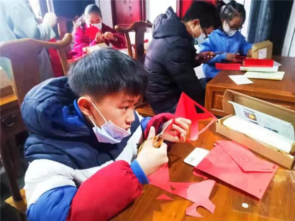 灯笼是我国传统文化的典型元素之一,蕴含了人们对美好生活的向往与期待,有着团圆、喜庆、吉祥的寓意。活动一开始,故居工作人员介绍了灯笼的来源,再仔细讲解灯笼的制作过程。在家长的指导和帮助下,孩子们认真地动手操作起来,慢慢地搭起灯笼的框架,然后利用彩纸剪出各种各样的图案装饰灯笼面,接着轻柔地将纸固定到灯笼骨架上。经过一个多小时的努力,一盏盏漂亮精巧的灯笼便闪亮“登场”了。当孩子们提着自己亲手制作的灯笼时,都乐在心头,喜在眉梢。小小的灯笼传递着节日的问候,孩子们把自己的期盼和祝福都倾注在眼前的灯笼上。