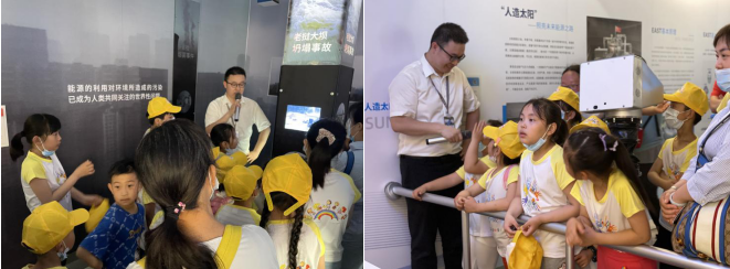 活动伊始,孩子们在科技馆讲解员的带领下参观科技馆。从火山模拟、电路实验、垃圾分类、能源利用、奇景空间、中国航天等,大家都被眼前的科技产品深深地吸引着。讲解员带领家长和孩子们在科学的世界中遨游、探索,让家长和孩子们在了解科学奥妙的同时,能够放松身心,收获快乐。参观中,孩子们时而在兴致勃勃地发射“空气火箭”,时而跑到“电路测试台”前进行体验,时而在水展区转动“音乐水轮”……整个参观体验活动融参观性、科技性、操作性、趣味性和知识性于一体,孩子们个个热情高涨,表现出浓厚的兴趣和强烈的求知欲。