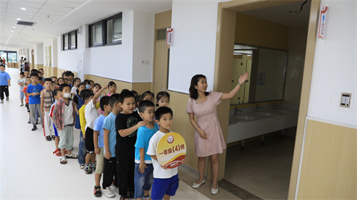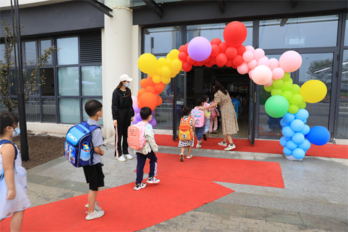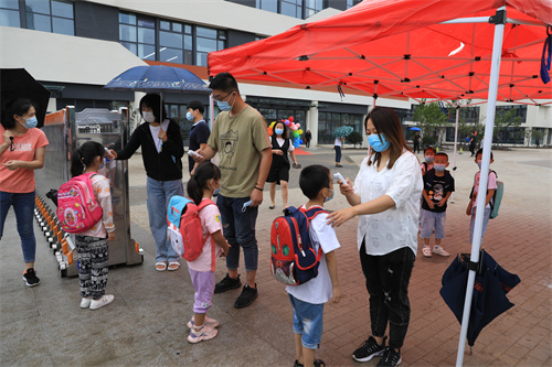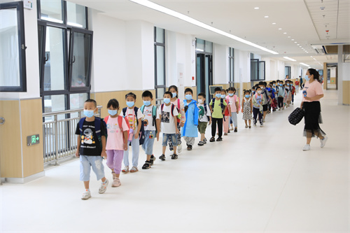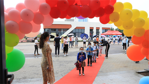 8月27日,位于城阳区棘洪滩街道康园路的康园路小学今天正式投入使用,上午八时错时上学的七个班一年级新生陆续入校。