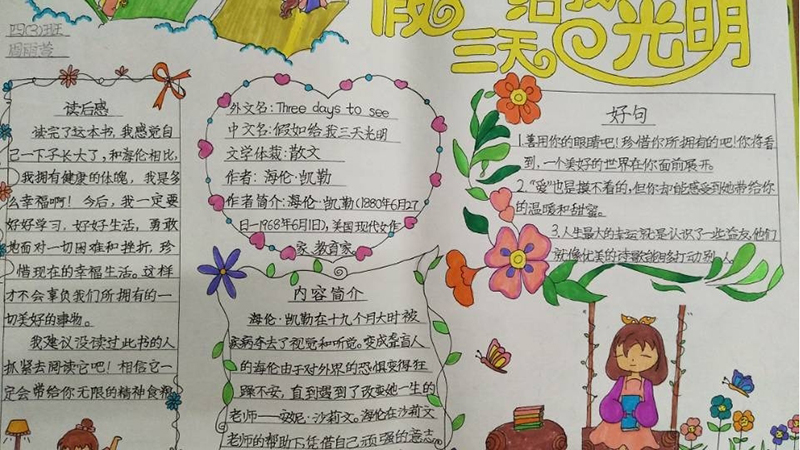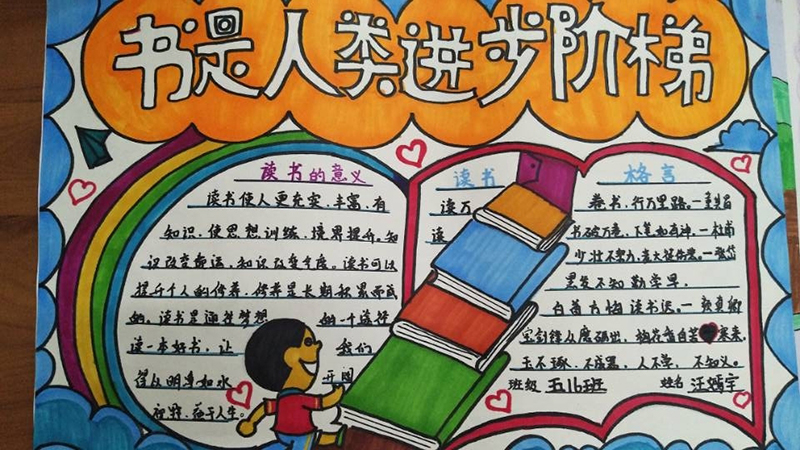 “读一本好书就像和高尚的人对话。”通过这次手抄报活动,孩子们记录了阅读的收获,学会了动手和动脑,加深了对所阅读的整本书的理解,分享了自己的感悟,增强了表达的自信心。在阅读中发现自己的聪明才智,在阅读中坚定自己的意志品质,在阅读中接力传承爱的力量。