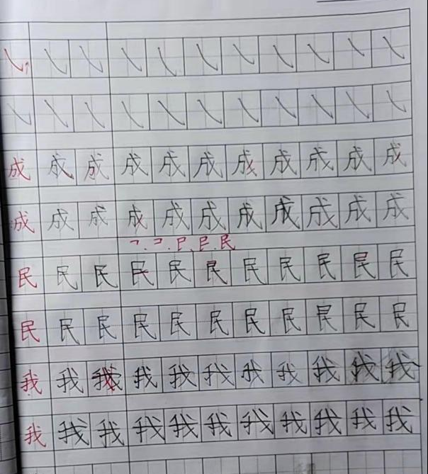 这段时间,志成的收获很大,不仅练习了许多汉字,还对写字产生了浓厚的兴趣。每天提前准备好纸张和橡皮,自觉守在屏幕前,认真听课,课后积极打卡,并根据老师的点评进行修正。 ![]() ![]()