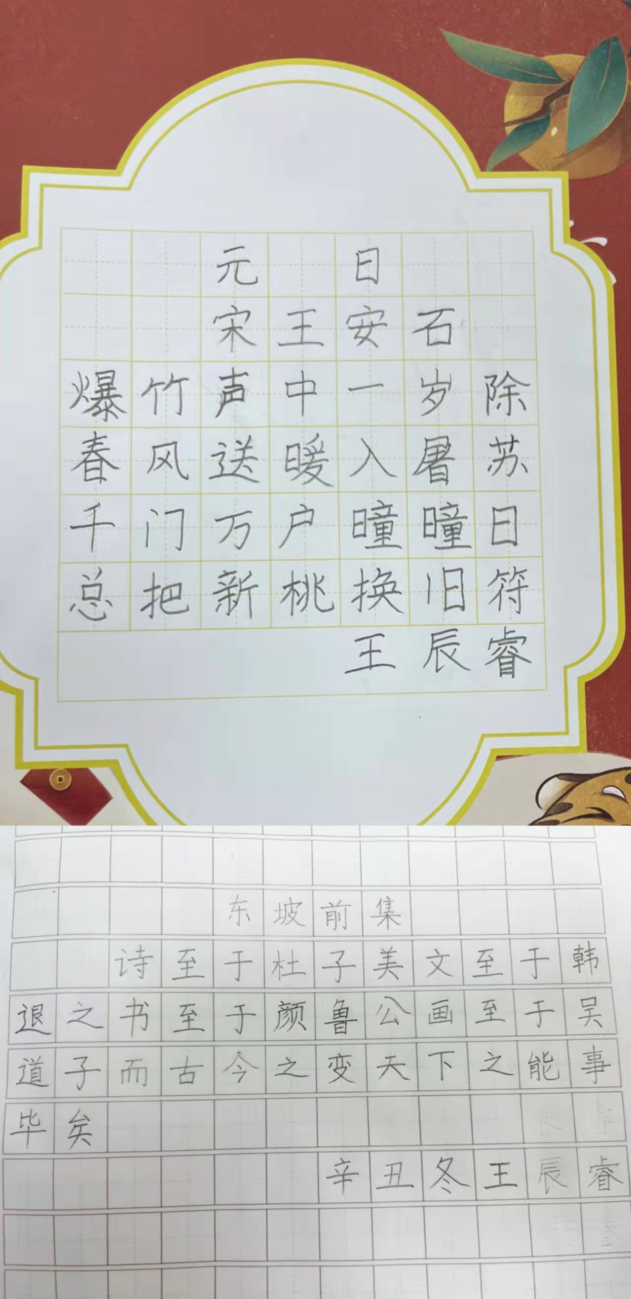 ![]() 在正式练习书法后,老师对辰睿的要求很严格,除了握笔姿势、坐姿要正确,课堂练习的作品也必须过关,这一度让辰睿产生抵触心理。但随着时间的流逝,辰睿也渐渐明白:写字是一种技能,手到心到并且持之以恒,习惯就成自然,字也会越写越好!至今辰睿只要练习书法,都会按照老师的要求来做。 ![]()