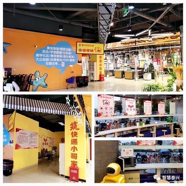 为快递小哥“筑”家 我们这样做 01 2019年12月7日,江苏省泰兴市快递、送餐员行业工会联合会正式建立,首批吸纳城区900多名快递、送餐员入会。联合工会刚刚成立,“美团外卖”公司就率先辟出专门场地,建设了“小哥驿站”和职工之家。 02 江苏省泰兴市总工会实施了驿家建设行动,在将原有的“惠工邮路驿站”打造成“快递小哥之家”的基础上,继续将“安康驿站”改版升级。统一配置微波炉、热水瓶、纸杯、小药箱、充电器等设施,免费为快递小哥等户外劳动者提供开水、手机充电、饭菜加热、歇脚休息、读书看报等服务。 03 今年年初,工会部门和邮政等单位相继拨出专款,为快递员购买了意外伤害保险。如果发生意外伤害事故,个人可享受最高31万元的赔付。同时,围绕快递、送餐行业普遍反映的停车难、道路限行、交通安全违法行为处罚等问题,工会部门联合交警部门召开座谈会,研究解决方案,为快递小哥解决实际困难,助力物流配送行业健康发展。 中通快递 周飞翔 当时我是非常激动的,我们成天都是为人服务,想不到,还有为我们服务的。泰兴市总工会党组书记、主席李炳良为进一步落实关于关爱快递员、网约送餐员、护工护理员、家政服务员等‘八大群体’的相关指示精神,今年我们决定将‘圆城市跑男梦、筑快递小哥家’作为年度创新项目,进一步探索服务内容和服务形式。 泰兴“快递小哥之家” 具体地址如下 1 江平路邮政支局 2 美好超市 永丰路店(泰兴市永丰路76号) 威尼斯城店(泰兴市鼓楼北路威尼斯城西大门北侧3号22幢110室) 塞纳公馆2店(泰兴市翡翠花园25号楼101、102、103) 未来城2店(泰兴市济川街道祥泰未来城市花园33幢112室) 鼓楼西路店(泰兴市鼓楼西路北侧218号—1室一楼)