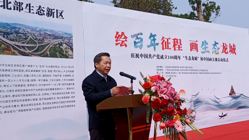 广西柳州市委常委、市委宣传部部长庞卡致辞 黎 坚 摄影 庞卡指出,“生态龙城”杯中国画大赛将以柳州为“纸砚”,以生态为“翰墨”,借海内外中国画画家的画笔,歌颂中国共产党成立100周年的光荣历史和丰功伟绩,展现和描绘柳州市和北部生态新区的区位优势、建设成就、美丽风光和民族风情,推动柳州精神文明建设,弘扬中国的文化瑰宝,扩大交流,以画会友。希望在海内外画家的笔下,描绘出中国共产党百年光辉历程,呈现出生态龙城无边的景致,展示出北部生态新区昂扬向上的奋斗姿态。