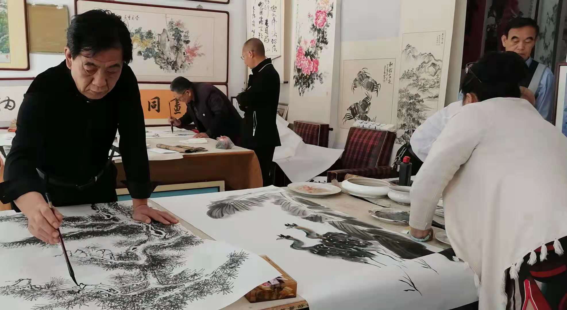 在现场书画家们留下了许多丰富多彩而又积极向上的足迹:他们在艺苑纳厚斋用笔墨与初心舞动旋律畅舒,鉴往知来。饱含热情、满怀豪情投入到绘画中,展现在墨与宣的融合中,用心、用情创作书画作品。一幅幅绘画作品讴歌了党的光辉历程,赞美了祖国的壮丽河山,展现了书画家们积极向上的精神风貌。
