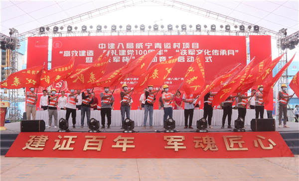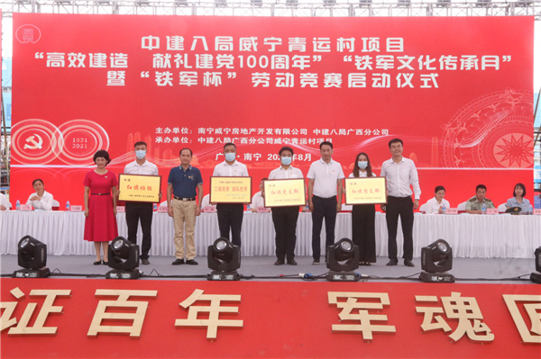 8月1日下午,中建八局广西分公司在威宁青运村项目顺利举行“高效建造,献礼建党一百周年”——“铁军文化传承月”暨“铁军杯”劳动竞赛启动仪式。