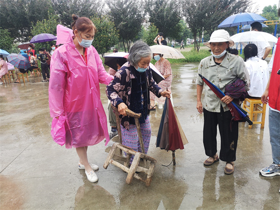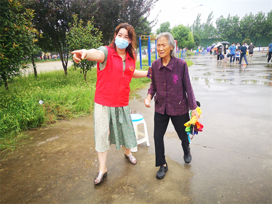 义工志愿者们刚到吴湾社区,就立刻投入到服务工作中去。由于社区中留守老人居多,天空一直细雨蒙蒙;义工志愿者们来到行动不便的老人家中,搀扶着老人排队,背着走不动的老人来到检测现场,帮助居民抱着母乳中的孩子助其排队。另一边,义工志愿者不厌其烦的为社区居民讲解一米线的重要性防止交叉感染,维持检测现场秩序,使核酸检测井然有序的进行。