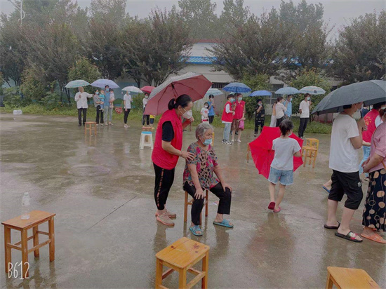 2021年8月12日上午九点,助力社区核酸检测,正阳县义工联合会会长郑亮积极组织义工志愿者,办公室主任梁春玲带领一群身穿红马甲不畏疫情的义工志愿着们,冒雨来到正阳县清源街道吴湾社区核酸检测点协助社区工作人员进行核酸检测。