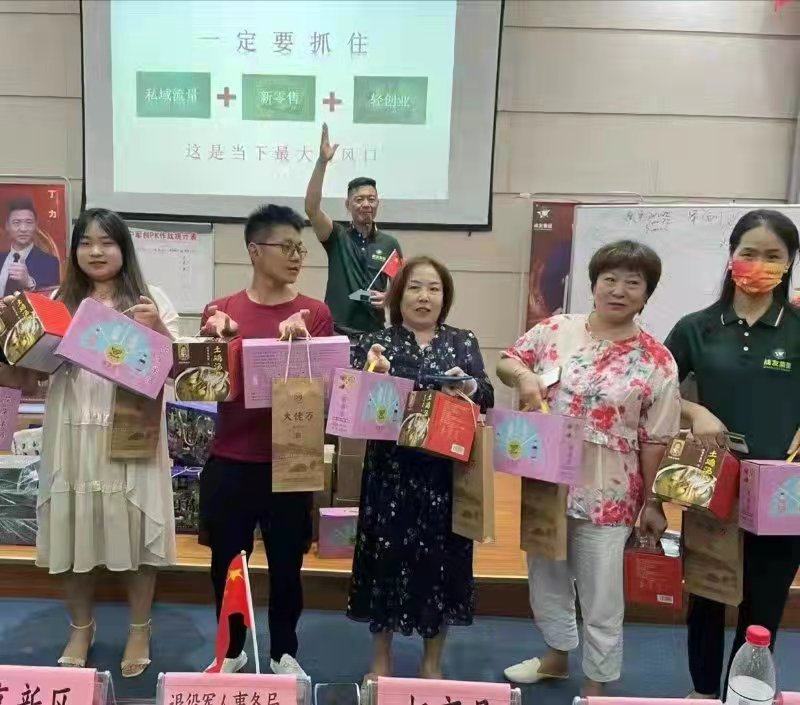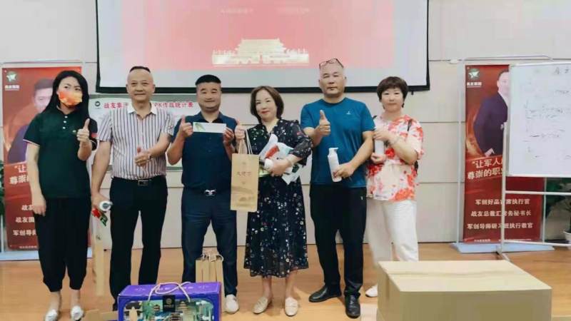 现场通过四个小时的培训和直播,刚刚脱下军装的新战友,以及20余位创业就业退役军人军属,全面投入到创业计划,犹以咸宁市毛祠村村官陈灰让带领十余位退役军人军属,经培训后的实战演练,成功问鼎战友集团奖励的一等奖,荣获价值19900元的礼品,同时成功晋升为军创师,咸宁体会到了退役军人成功创业就业的荣耀。中军湖北科技集团有限公司一行五人团队齐心作战,以68分位居现场运营Pk第二名,抱走价值6888元大礼包。据悉,此次大会,战友集团拿出20余万元的奖品助力退役军人军属创业就业。