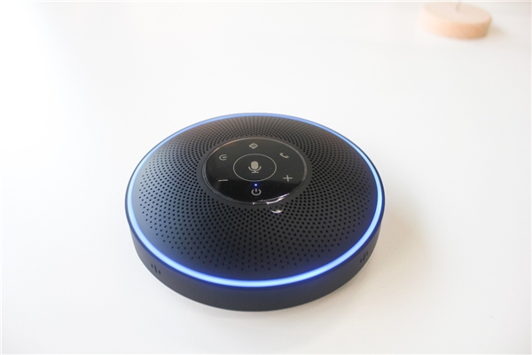 接下来就体验它的通话功能,在实际体验的时候,我通过蓝牙连接M2, 把M2放在桌子上,距离它1米多进行通话。整个通话下来,对比手机来看,明显通话质量提高了不少,不用大声说话,通话另一方也能清楚听见自己的声音,对面的声音通过M2播放出来也是清晰可听的。这个时候还能解放自己双手,顺便用笔记录对方说了什么,再也不用出现一边拿着手机,一边单手忙脚乱记录的情景了。还有一点体验非常好的是,说话的时候,M2首创的人声定位功能,哪里说话亮哪里的DOA功能,真的百玩不腻,很好的产品交互设计。