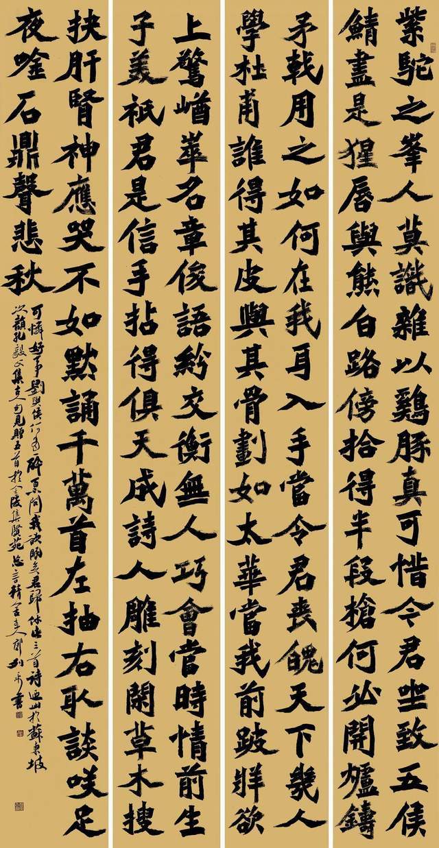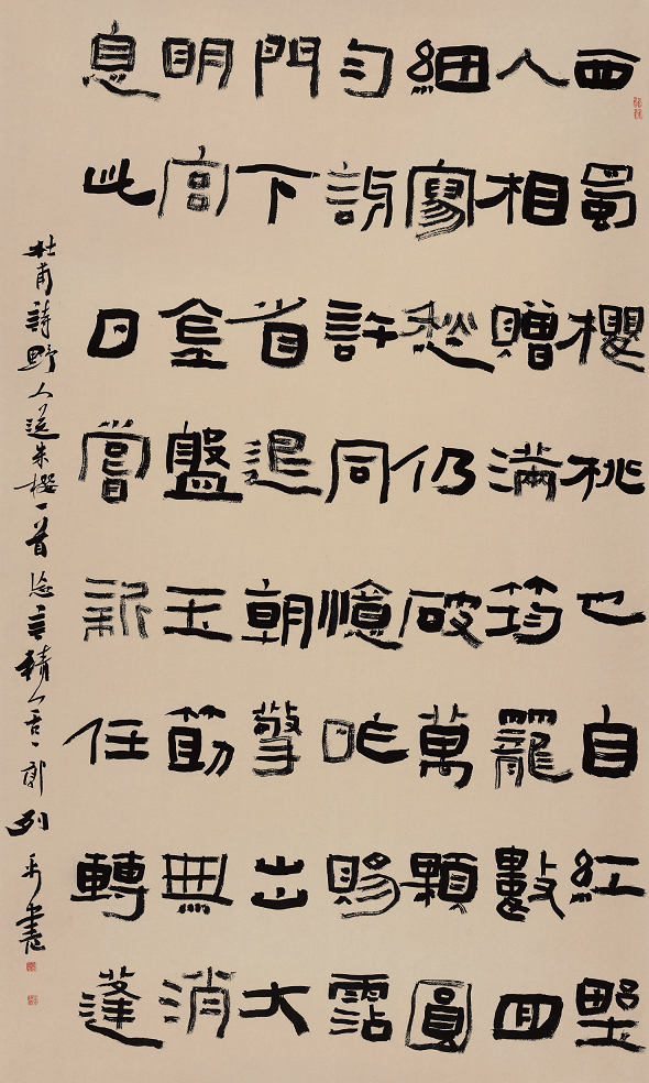 郭列平先生书法能纵横捭阖之间,援翰挥洒,容纳大千,观其书使人能于奔腾之际静止,浮躁之后落寞,此两者是相互矛盾之结合体,又是同时和谐存在之个体。当代书家之作品所稀缺者,绝非熙熙攘攘、光怪陆离之展览体,而是使人观后,给人以狂热后冷静之思考,此类思考,当于郭列平先生笔下见之。李后主论老年之书曰:如诸葛董戎,朱睿接敌,举板舆自随,以白羽麾军,不见其风骨,而毫素相适,笔无全锋。郭列平先生之书作,正是于喧嚣之后,认真冷静思考所创新之创造。不薄于己,不媚于人,自抒胸臆,臻于慎独。其将大巧不工之力量,化作举重若轻之境界。由重至轻之体现,由繁至简之转化,绝非一时偶然,当是由百炼钢成绕指柔,此种变化,亦是能者之言,智者之识,勇者之手段。