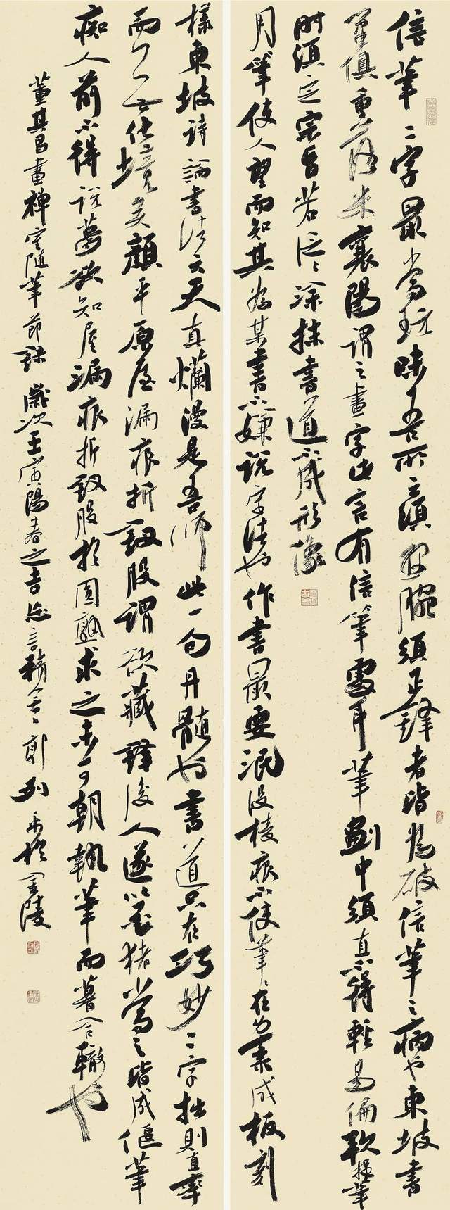 李后主有论书句曰:壮岁书亦壮,犹骠姚十八从军,初拥千骑,凭陵沙漠,而目无全虏;又如夏云奇峰,畏日烈景,纵横炎炎,不可向邇,其任势也如此。盖谓李重光之论,甚能契合书理之妙处,若是壮年之书,不能风发鹰扬,鱼龙潜跃,终不能得变化二字之真谛也。书者,起于方正,行于温润,止于清凉,当是合乎变化之理。近见人作书,食古者多矣,化出者少矣,岂不知书法二字若不能从古人间化出,终不是自家面目,到死也是一抄书匠也。或谓:如何是壮年之书?对曰:壮年之书,当求厚,求拙,求雄浑,求空灵。譬如长江大河,譬如阵云千里,譬如海天月色,譬如云蒸霞蔚。