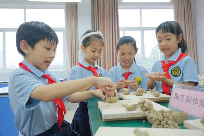 童趣盎然,伙伴有礼。6月1日,浙江省武义县芦北小学围绕“伙伴”核心内涵召开“新劳动”特色六一欢庆活动,开启“新劳动”视角下的岗位体验。这一天,小伙伴们可以是“收纳师”、“烘焙师”、“陶艺制作师”、“植物拓染师”、“剧场检票员”、“外卖小哥”、“剧场化妆师”…… 在缤纷多彩的职业体验中,伙伴们收获新劳动的乐趣,学习新本领,掌握新技能。