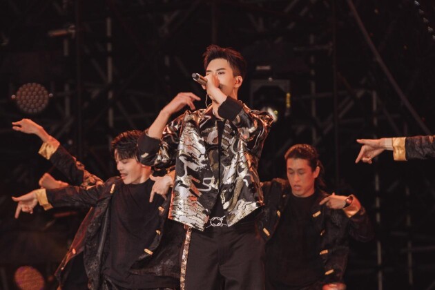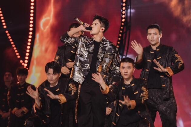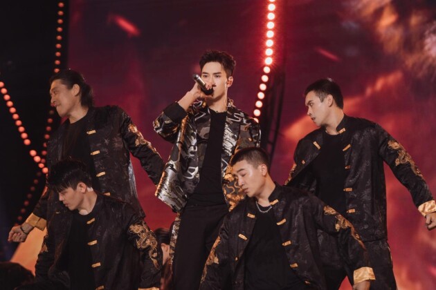 《虎将》舞台演绎赢得现场观众热烈喝彩叫绝。任艺飞身着金色松树祥云上衣,与二十位舞者默契配合,将观众瞬间拉入古代的战场氛围。中国风词藻结合电子音乐开启了“国风电子”的新潮流,随着唢呐声响起,旋律气势磅礴豪迈。与中国传统乐器古筝、笛子、唢呐配合流行电子乐,创造出前所未有的听觉盛宴。