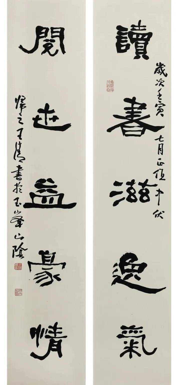 ◎隶书《清·通门和尚·拂座争枝诗联》22×138cm×2