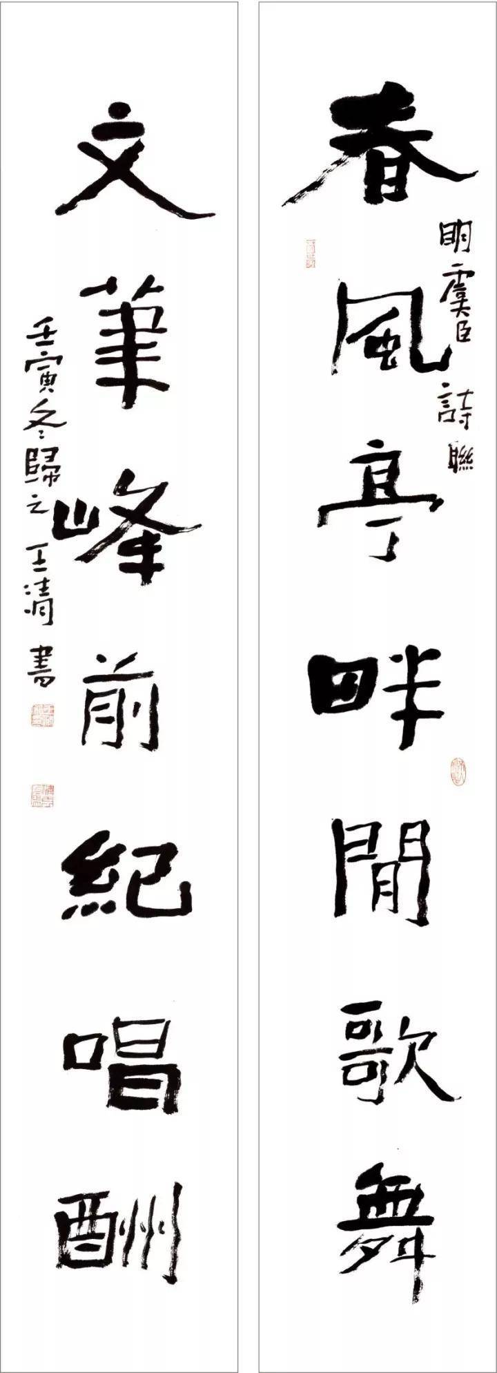 王清书法的入门与习俗无异。楷则唐人,行则晋宋,隶则东汉碑刻,草、篆少习。稍成便生异想,行倾心于八大,楷转习北碑,隶则注目清人,于郑簠、邓石如、何绍基、李瑞清、曾熙、沈曾植间探路。此时,碑学倾向已比较明显。经过长期淬炼陶冶,五体之中,行书和隶书面目初具,风格渐显。