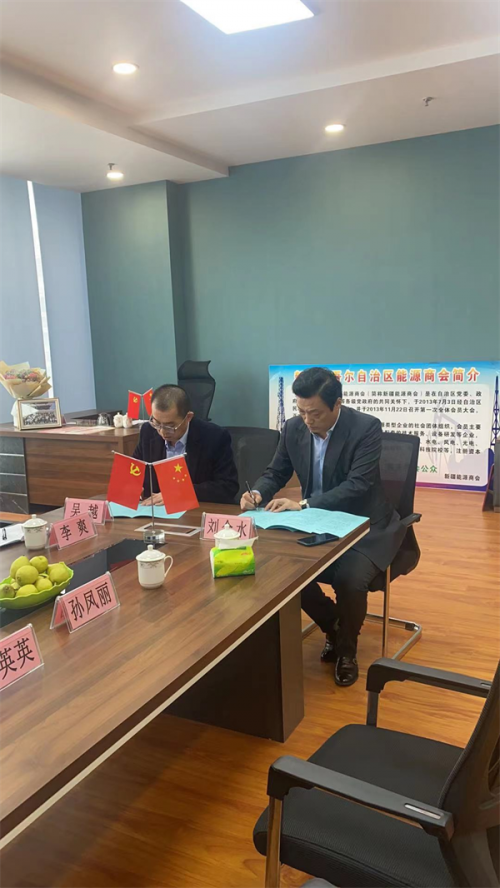 在活动中,大家对党的二十大精神进行了回顾交流讨论。新疆能源商会会长刘金水、大元集团新疆公司总经理兼党支部书记吴越、双方登台签署了《党建共建协议书》。