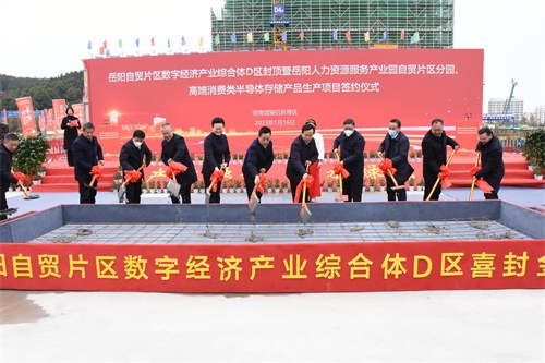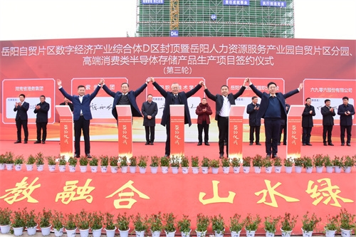1月16日,岳阳自贸片区数字经济产业综合体D区封顶,4个职教与产教融合项目,1个半导体存储项目集中签约,市委副书记、市委政法委书记、城陵矶新港区党工委第一书记汪涛致辞,市委常委、市委组织部部长谢群出席,市人民政府副市长魏淑萍主持,以及岳阳职业技术学院党委书记陈美中,党委副书记、校长黄岳山等出席或见证签约。