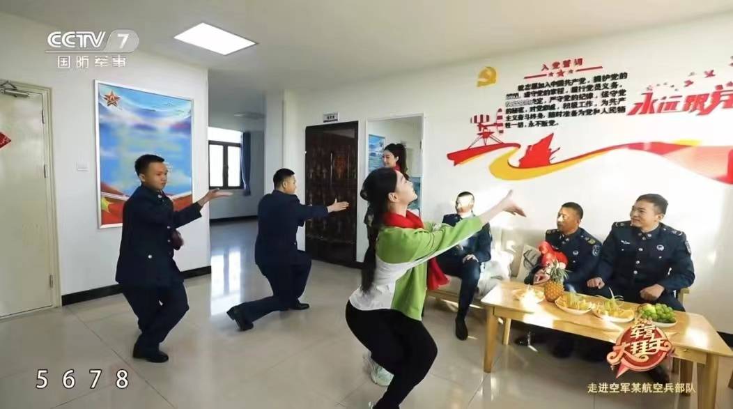 好听的军歌,热血的舞蹈。在这两天的CCTV-7军事频道兔年《军营大拜年》特别节目中,玖儿和战友表演的第八个节目葫芦丝+舞蹈《天边》,博得了官兵们阵阵掌声和喝彩声。