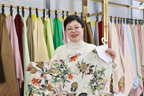 鉴于花型的“保鲜期”较短,近年来,易灿纺织也延伸做素色和拼接面料。2023年下半年以来,新中式风格面料花型爆火,对标客户要求,公司则生产与提花面料相似的底布来做印花产品。今年,罗丽琴又新成立了一个公司专注销售CEY、四面弹产品,加强针对性销售……“客户拿我们家的面料基本可以不用考虑款式,我们把面料可以应用的最前沿的款式打版出来免费提供稿子给客户参考。”罗丽琴说道,易灿纺织总是站在客户立场去考虑问题,去设计和推荐真正适合客户、符合客户需求的方案,由此,她也成功成为“千万销量女裤背后的女人”。