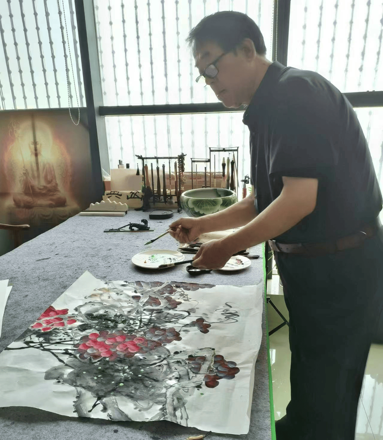 陈建国先生的书法作品具有浓厚的文人气息,充满禅意。他告诉我,书法是一种修行,通过临摹古人的作品,修炼自己的心性。这让我对书法艺术有了全新的认识,原来书法还可以带给人们心灵的宁静。他的心是善良,他能把美好留在作品里;他的心是纯洁,他用文字将爱传递。