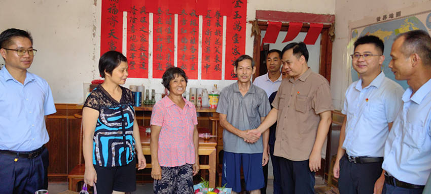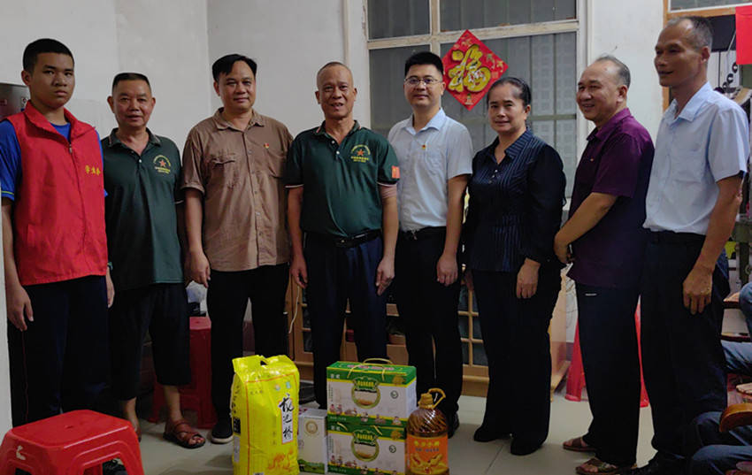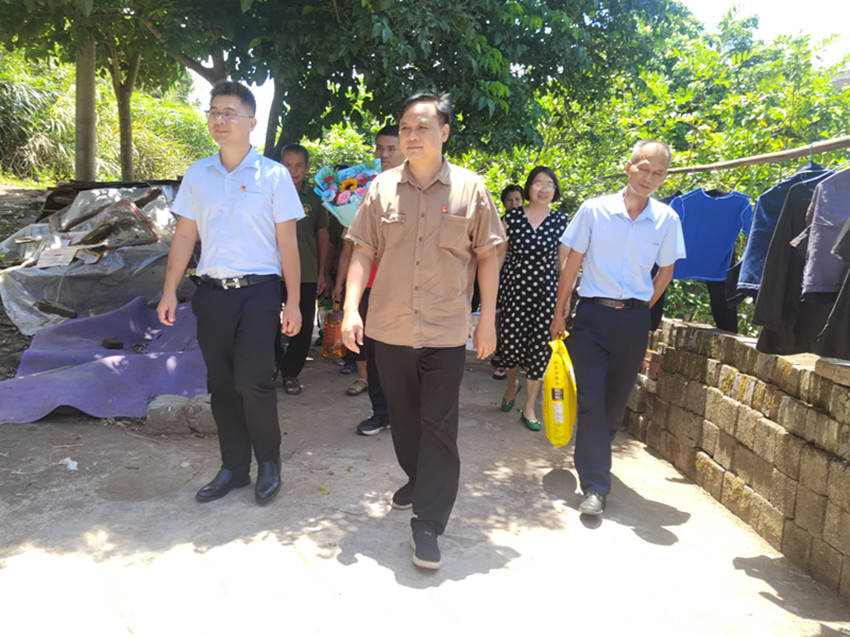 慰问团一行二十余人,在平南县退役军人事务局、平南县平山镇党委政府等部门领导的陪同下,深入平山镇多个村庄,为退役军人及烈属送上了慰问金、花生油、大米、米粉、牛奶等慰问品,并与他们亲切交谈,倾听他们的心声。