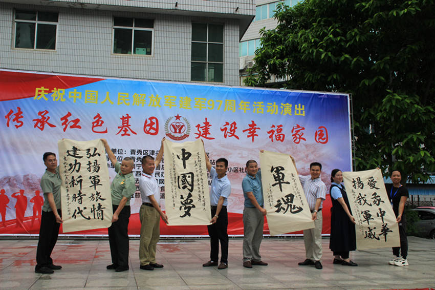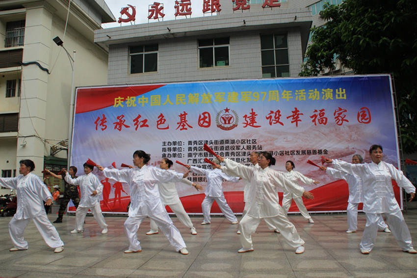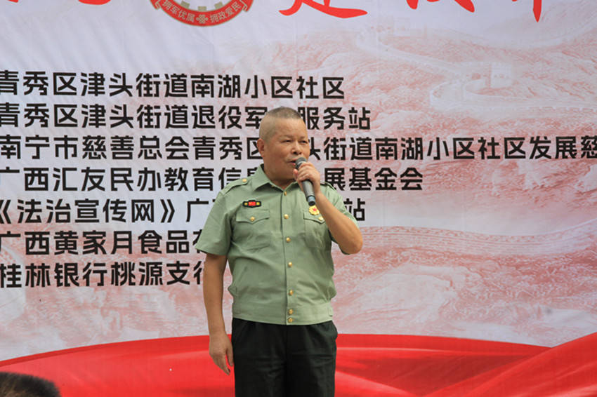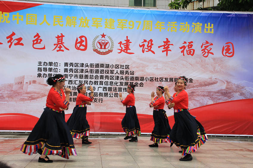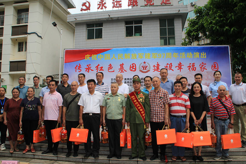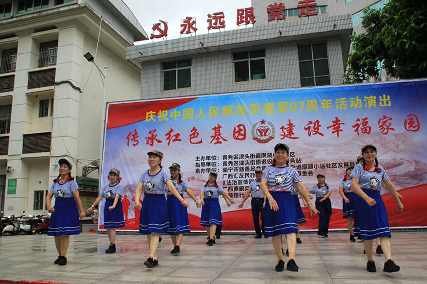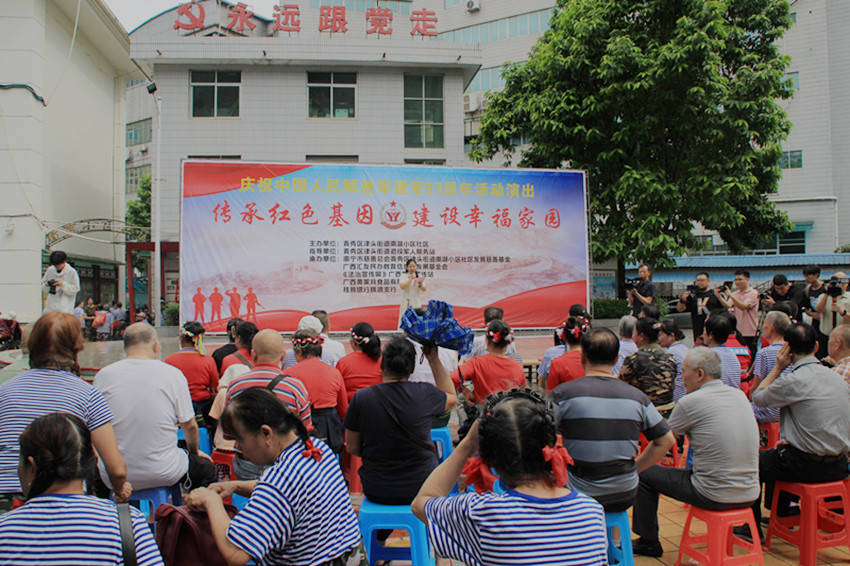 在庆祝中国人民解放军建军 97 周年之际,红旗飘扬,映照忠诚担当。《法治宣传网》广西普法宣传站携手南宁市青秀区津头街道南湖小区社区、津头街道退役军人服务站、广西黄家月食品有限公司、桂林银行桃源支行、广西汇友民办教育信息发展基金会等单位联合举办了一场激情澎湃的红歌大汇演,并向退役军人送上了诚挚的慰问,共同铭记光辉历史,传承红色基因。