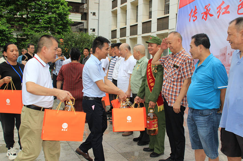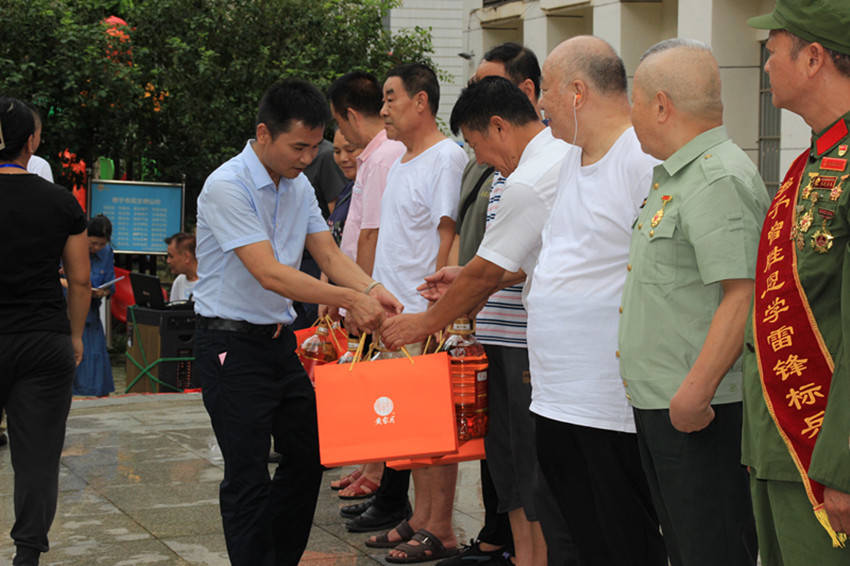 在活动中,特别安排了慰问退役军人的暖心环节。广西黄家月食品有限公司副总经理欧正胜和社区党委书记韦灿斌亲自为罗善廷、李畅荣等30位退役军人代表送上了黄家月月饼和食用油,感谢他们退役不褪色,始终保持军人的本色,为国家和人民所做出的卓越贡献。