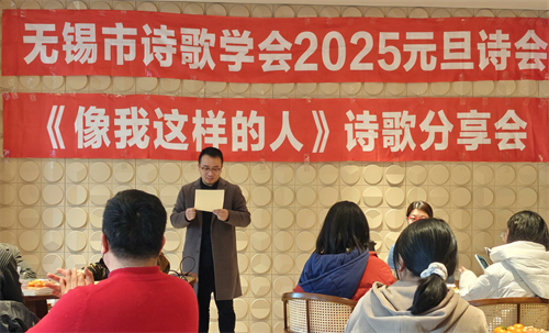 2025年1月1日下午,无锡市诗歌学会成功举办了一场充满文化气息的“无锡市诗歌学会2025元旦诗会”。本次诗会特别邀请了老中青三代诗人与无锡太湖学院文法系的学子们共聚一堂,共同庆祝新年的到来,促进了诗歌文化的传承与发展。