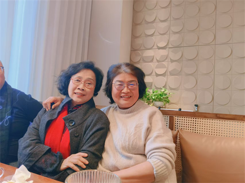 无锡市诗歌学会副秘书长潘剑霞(右)和安娟英合影留念