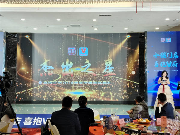 新春将至,喜事临门。 1月20日,喜抱生态集团2024颁奖典礼暨小强门店、喜抱V厨年度表彰庆典大会在南京世纪缘湖滨花园酒店隆重举行。会上,由谢继华店长负责管理的喜抱V厨鼓楼新村店,青石村店,司背后店等店面获得公司未来之星奖,南京喜抱V厨鼓楼新村店,司背后店,青石村店店长谢继华在璀璨的灯光和音乐掌声中荣登领奖台接受颁奖。