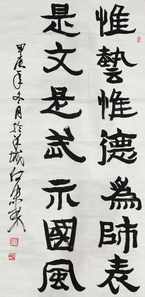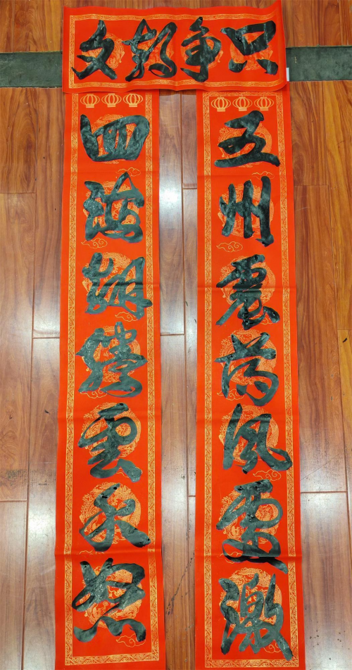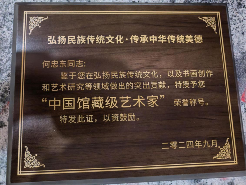 应邀出席2024年广州市委宣传部主管的南国书香节,并赠送书法作品《佳期迎万宾,南国绘书香》一幅,赠送五幅一笔《龙》为广东经济出版社收藏。赠送一笔《龙》和《马》为海南三亚书法院收藏。一笔《酒》为广州春酒有限公司收藏。一笔《犬》和《龟》为东莞陶生源艺术研究院收藏。应邀出席中国教育电视台《扬帆启航》春节电视文艺晚会,并赠送作品一笔《蛇》和《扬帆启航》,作品被评为优秀作品金奖。新的一年里,何忠东将孜孜不倦,继续努力,为弘扬中华优秀书法艺术再创新篇,以不辜负这一伟大的崭新时代!