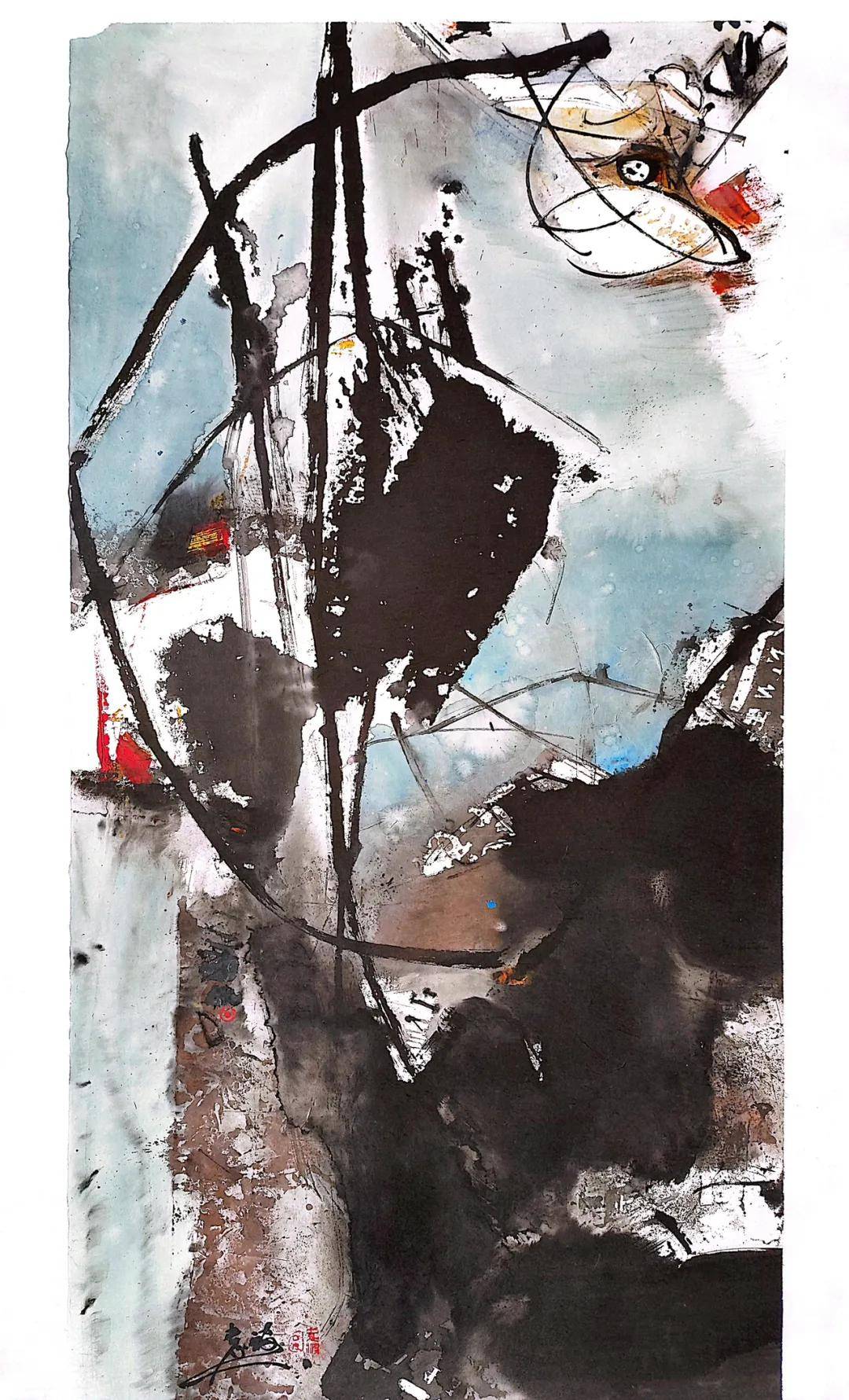 老话说,天无绝人之路。正当袁波一筹莫展之时,他的一幅画在加拿大的国际艺术大展上获了大奖,获得了100万奖金!从天而降的喜事使他的生活有了转机。后来我问他,那幅如今被收藏在大洋彼岸的画内容是什么?他说,是寒鸦孤雁,“拣尽寒枝无可依,寂寞沙洲冷”。