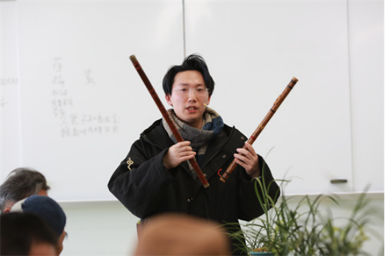 尺八演奏家许炎冰先生向大家介绍了尺八艺术,并现场演奏著名曲目《空谷幽兰》。