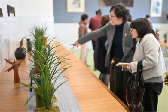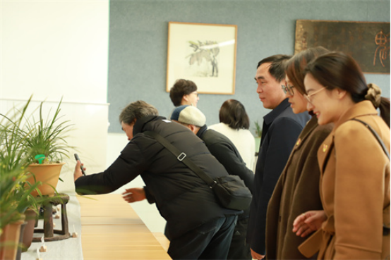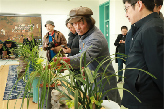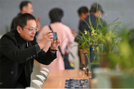 兰叶俯仰自如、潇洒脱俗,兰花清丽典雅、素而不绝,兰香绵绵缕缕、清幽致远,各位嘉宾或轻嗅花香,或驻足静赏。