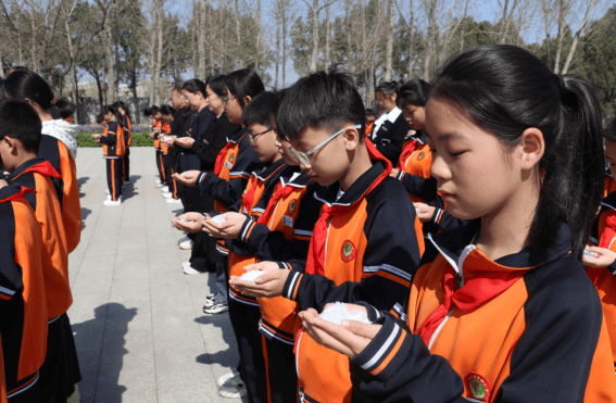 活动在激昂国歌中拉开帷幕,唤起人们对先烈奋战场景的记忆。师生手捧白花默哀,向烈士敬献花篮,行三鞠躬礼,学校负责人亲手整理挽联,表达深切哀思与崇高敬意。