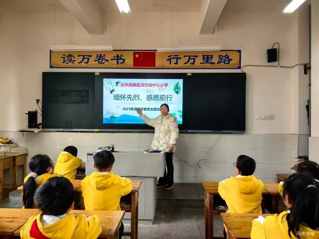 2025年4月1日,达州高新区河市镇中心小学组织开展了清明节教育主题班会活动,围绕清明节简介、由来、节日习俗、缅怀革命先烈、清明节安全教育五部分展开,旨在传承传统文化、弘扬爱国主义精神。