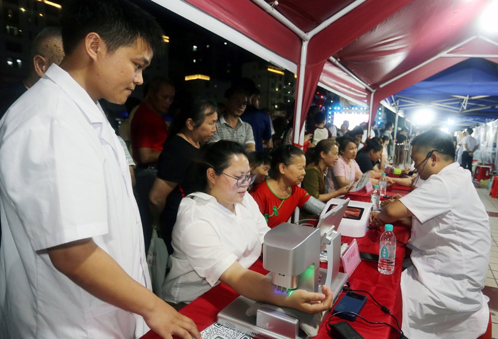 据统计,活动当晚用AI影像心脑血管检查仪免费为500多名群众做心脑血管疾病筛查;发放健康宣传资料2000多张;为300多名群众开展特色中医推拿服务。(图文|覃新强、王开宝)