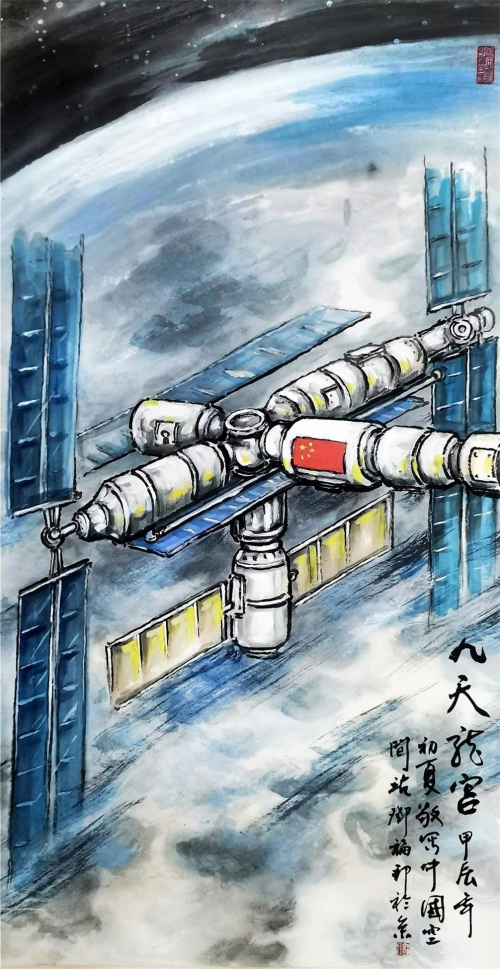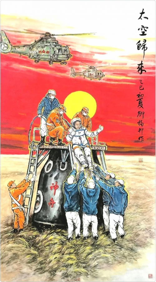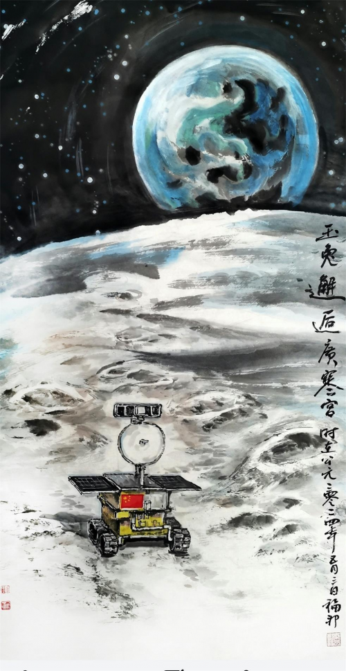 嫦娥拂袖月宫去,回目广宇接飞船。