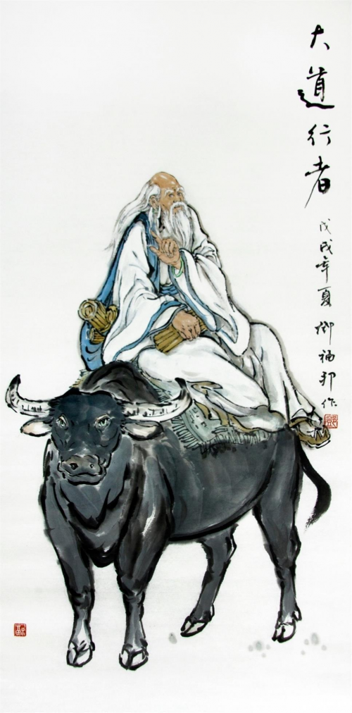 洁衣圣翁驭青牛,伊喜慧目待君贤。