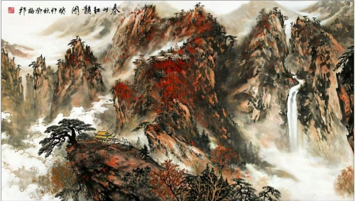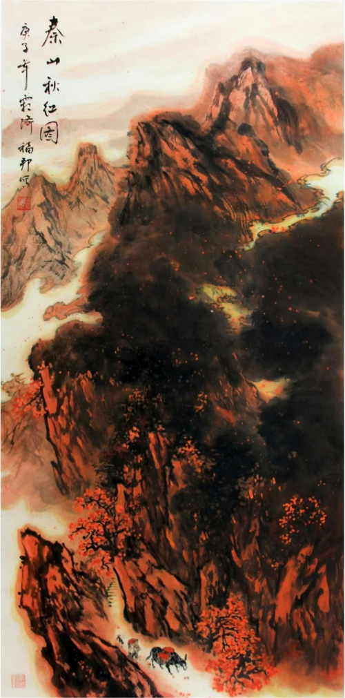 秦山画派”的开创: 邓福邦以秦岭(秦山)为创作母题,形成了雄浑厚重、气势磅礴的独特风格。他的作品如《中华龙脉秦山赋彩图》以长卷形式展现秦岭的壮美,兼具地域特色和民族气派。