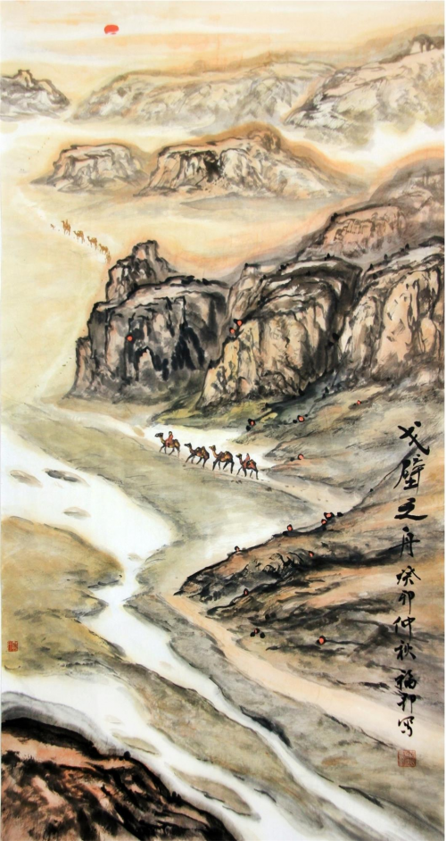文化符号的凝练:他的画作常融入黄河文化、黄帝文化等人文元素,如《黄河明珠三门峡》长卷,不仅描绘自然风光,还承载了中华文明的历史记忆,成为文化传承的视觉符号。