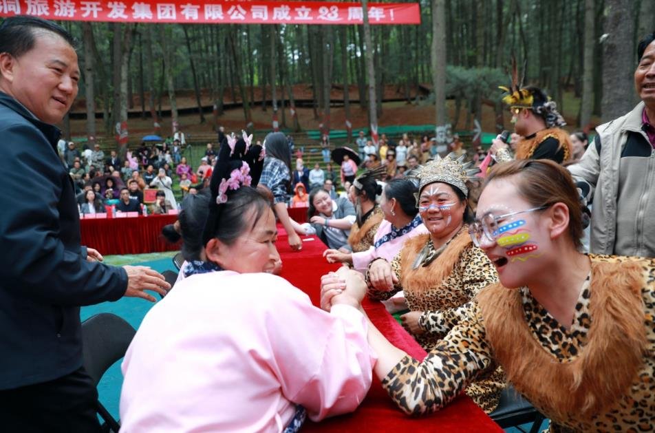 本次活动还安排了丰富多样的节目。西游文化、野人文化农耕走秀,生动展现了景区独特的文化魅力;斗鸡比赛、男女扳手腕擂台赛、成语接龙等互动环节,让现场观众热情高涨;男子团体拔河赛则充分体现了团队协作的力量;而大草坪晚宴和烟花秀更是将庆典氛围推向了高潮,大家在欢乐的氛围中共同庆祝集团23岁生日。