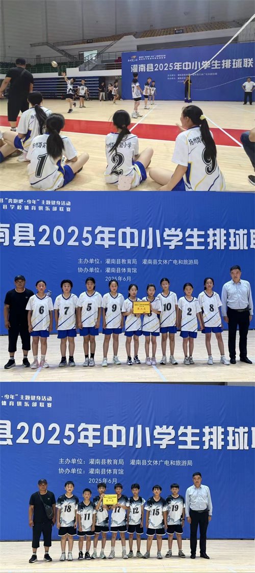 6月13日下午灌南县2025年中小学生排球赛在县体育馆落下帷幕,扬州路实验小学排球队凭借出色发挥,男子排球代表队勇夺冠军,女子排球代表队斩获亚军,为学校赢得荣誉。