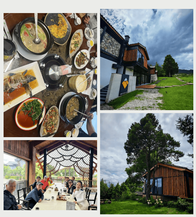 度假区依山而建,融合纳西族风格与现代设计,视野开阔,环境静谧。团队深入了解了其住宿、餐饮、运动、亲子、会议等多元功能配置,亦亲身感受到接待团队的热情接待与高效服务。