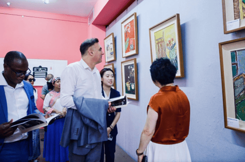 午后,中外艺术家与外交官们共聚桂林画院,窗外"甲天下"的漓江山水与展厅内的艺术珍品相得益彰。展厅内既有笔精墨妙的中国传统书画,又有独具匠心的国际当代创作,东西方艺术在此对话,为来宾呈现了一场多元交融的视觉盛宴。这些作品既展现了创作者高超的艺术水准,更诠释了不同文化间碰撞交融所产生的独特美学魅力。