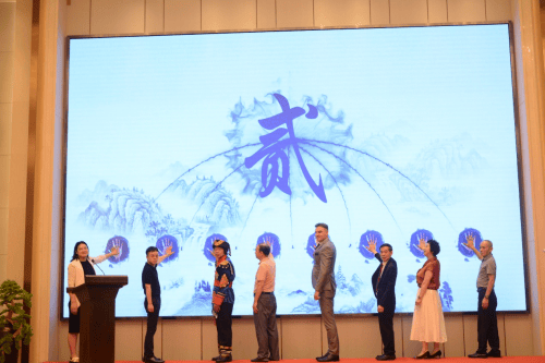 在全场瞩目下,嘉宾们手触大屏幕,随着倒计时结束,"中华书画国际艺术交流会"大字璀璨绽放,标志着这一国际艺术交流平台正式启航。现场掌声雷动,中外嘉宾共同见证了中国书画艺术走向世界的新起点,开启了中外文化艺术交流的新篇章。