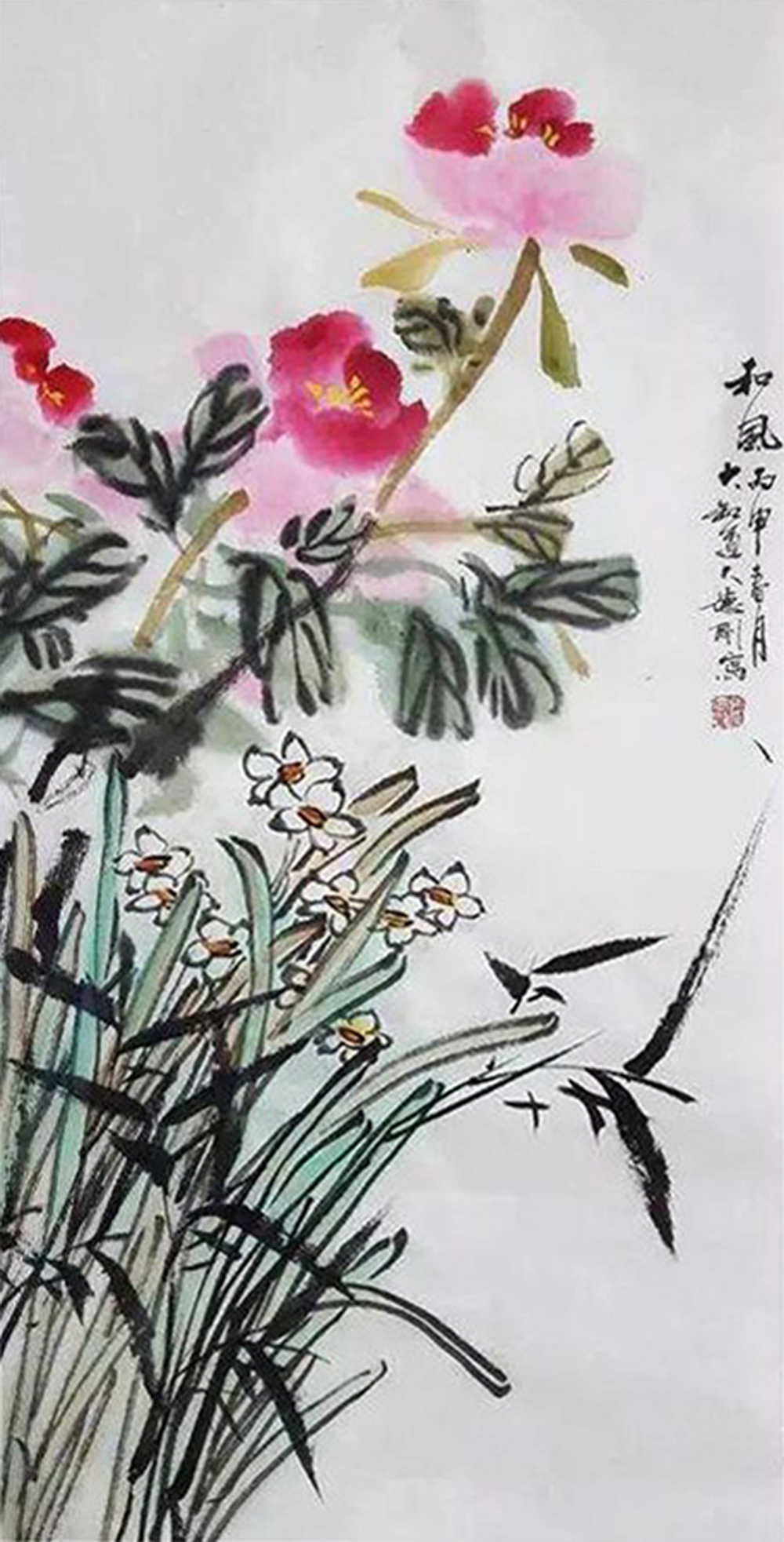 张德刚创作花鸟画,与他的心性有关。他想在花鸟画里陶冶情操,表达一种家园意识,获得心灵的抚慰,他认为当下物欲观之味重,人心不古者众,需要美昌世济生,让传统得以张扬,似有蔡元培的“以美代宗教”之良愿,用他的话说:“爱的是堂正气象”,“将绘事六法承来逸气吐”。