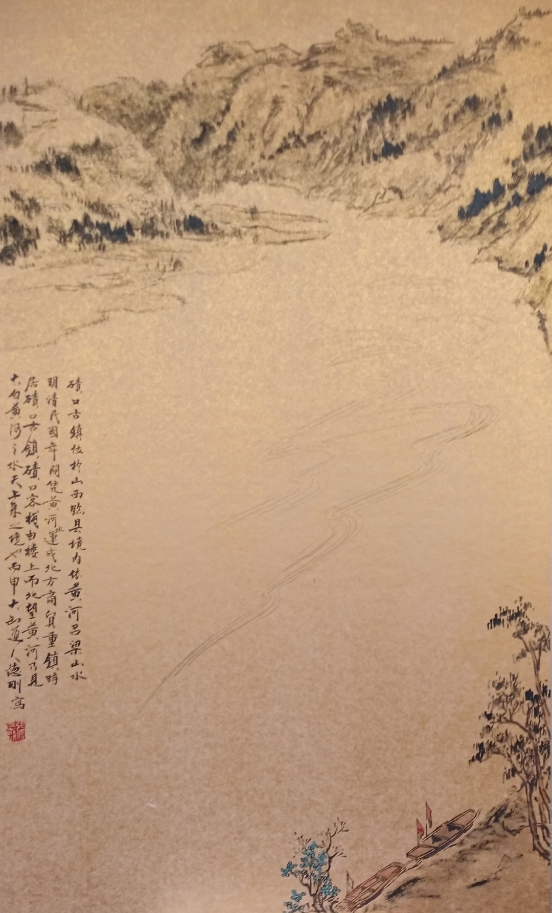 张德刚是一位理想主义者,也是一位立足现实的画家。他的花鸟画强化对传统花鸟程式语言图式的承接,也重视对生活的观察提炼,创作写生花鸟画,总的说来,他是一位写意型的画家。写意是中国画的骨髓,中国画重“画品”,品画重在其味,所谓画之味,为画之旨也。画品中“神品”与“逸品”乃是上品,画中的“神”与“逸”乃画之魂。这些都是指画要有画眼。张德刚的山水画《黄河写生》构图巧,立意古。画的左角画黄士高原的厚重,以干笔皴擦为主,右下角左框边画一崖岸,右边上部或淡墨勾出河岸,或皴擦出低的石土,中间是空白,表现黄河从上往下流注。这幅画作营造了黄河之水天上来的意境。